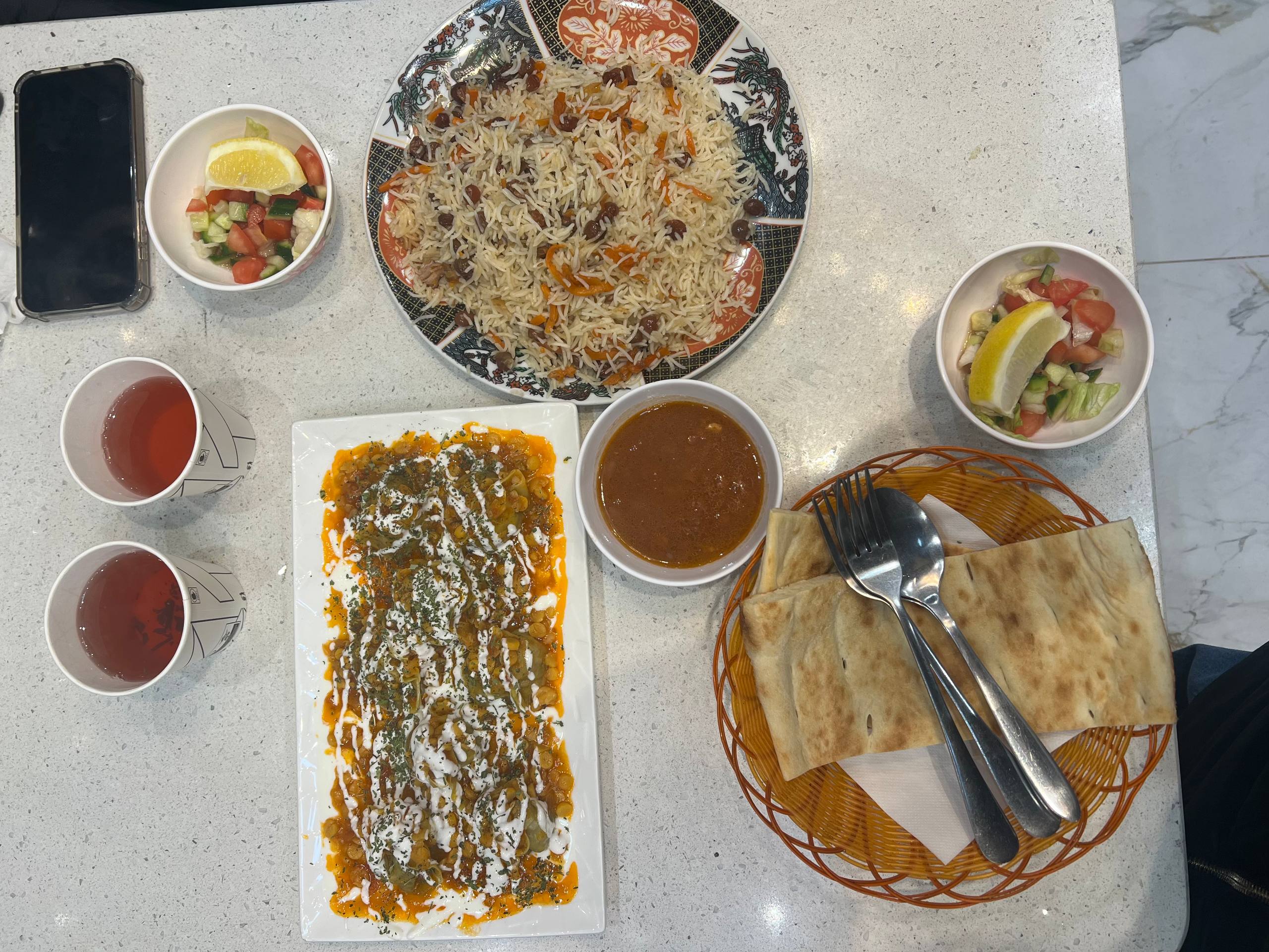 Jumagul often cooks yet enjoys going to restaurants with friends and spending time talking with them. Maintaining celebrations such as Eid al-Fitr and watching Cricket matches are also important for him and his culture. He swiftly ordered in Pashto some tea, mantoo and qabuli palau for us. The food was incredible! As we kept talking a bit more, Jumagul pointed out how it is common for non-Western countries to share food during meals, while in western countries they never do. And it’s true! I have grown up to only eat what I ordered or served myself, yet during the outings with Jumagul, Ismail and Noyon, we have shared all the food we have ordered together.