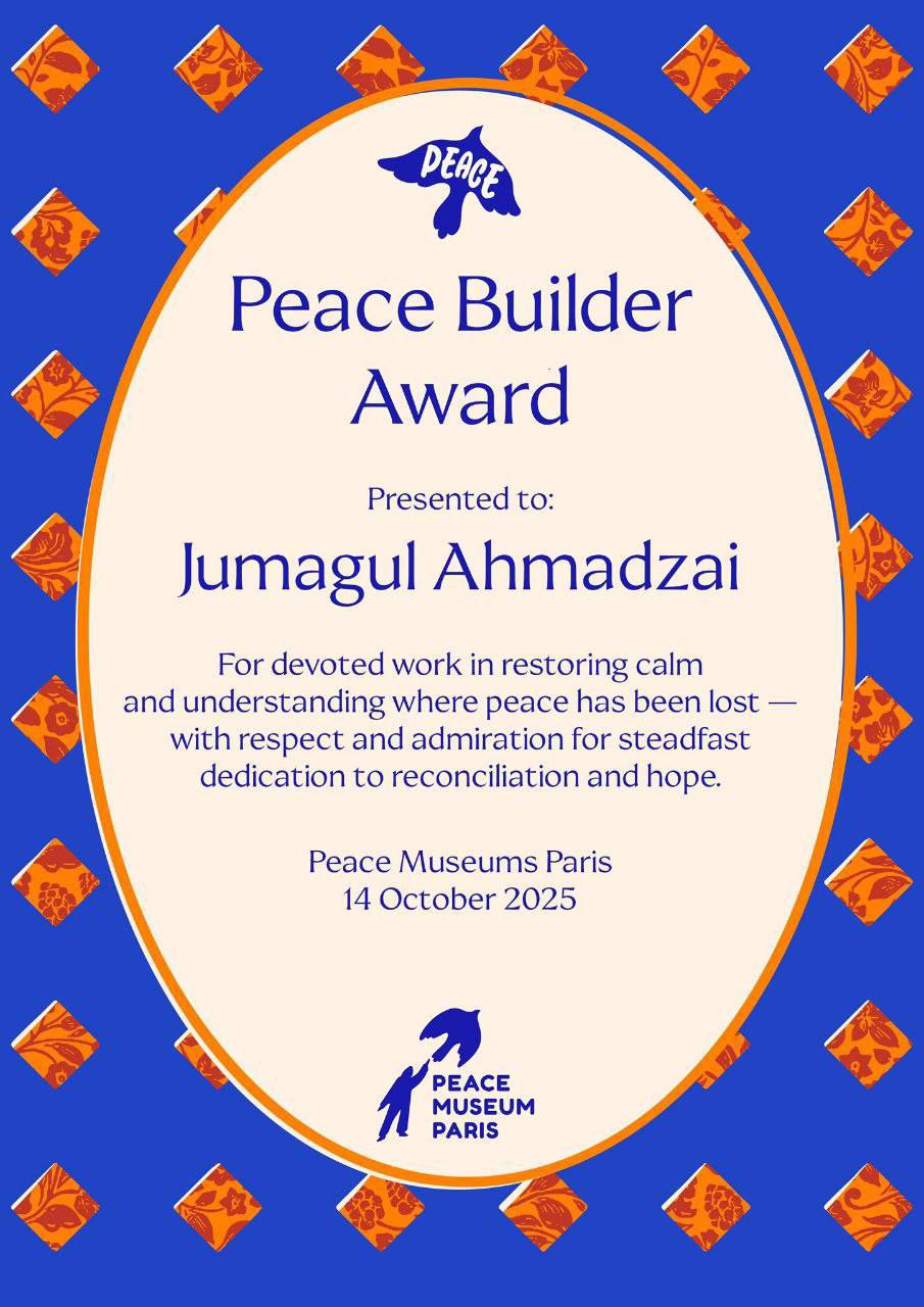 Jumagul wants people to know that, “The Afghan person is very kind.” It is not uncommon for Afghan families to offer food and a place to stay to people from other countries who are visiting. As he says this, I easily see these same considerate and cooperative qualities in him. Between heavy weeks with work and language classes, he never fails to make the time to volunteer. It is no surprise to learn that he was awarded the Peace Builder Award by Peace Museum Paris.